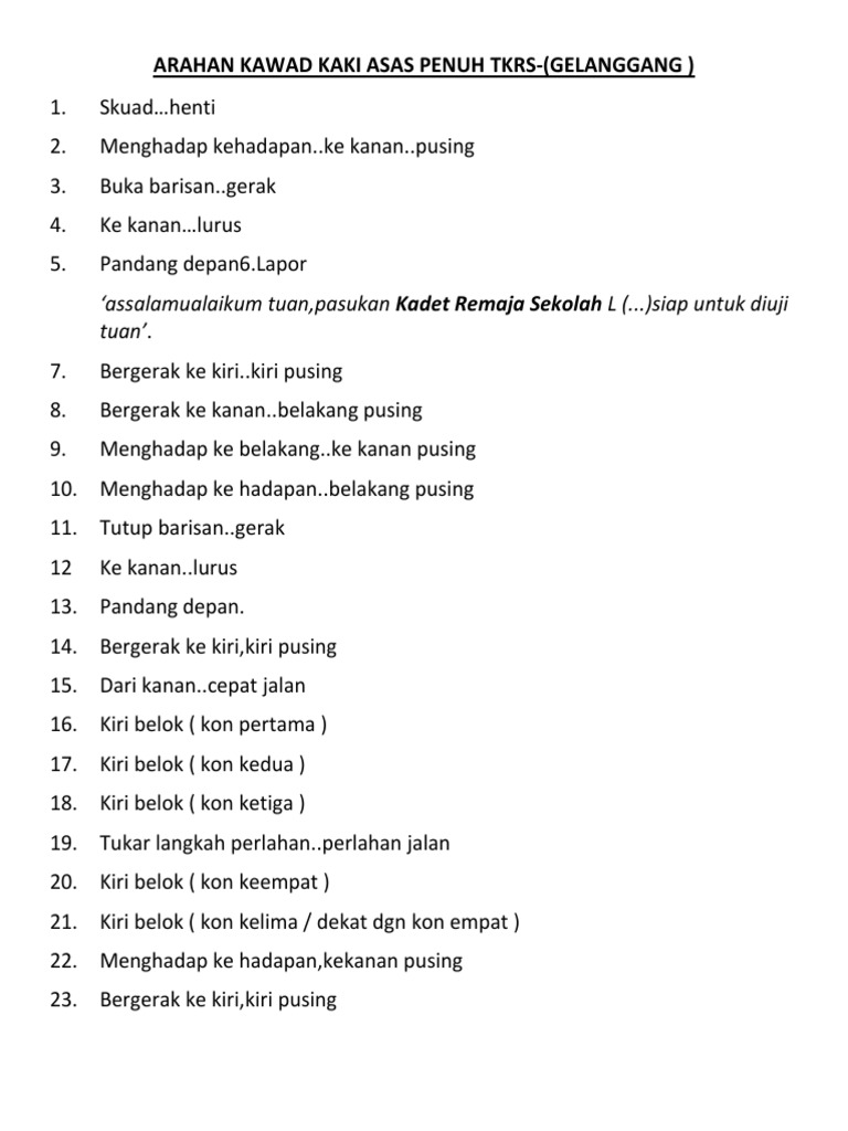 Arahan Kawad Kaki Asas Penuh Pdf